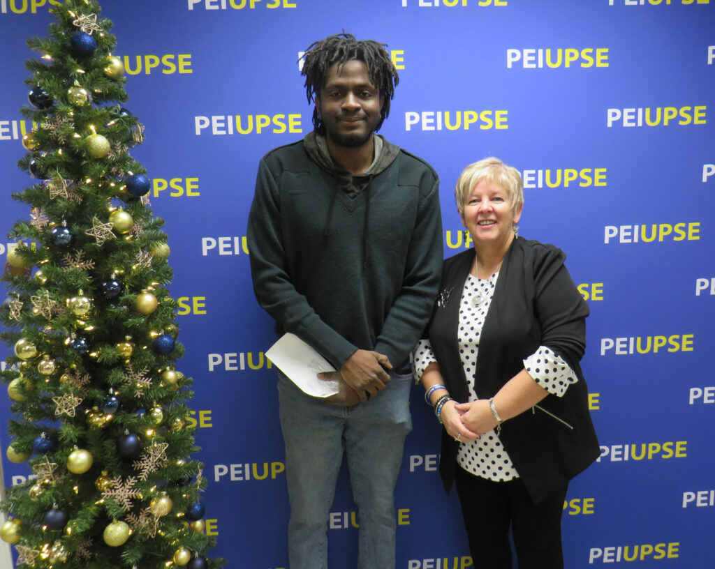 Photo: Tobiloba Olaitan ($500) and Karen Jackson (UPSE President).